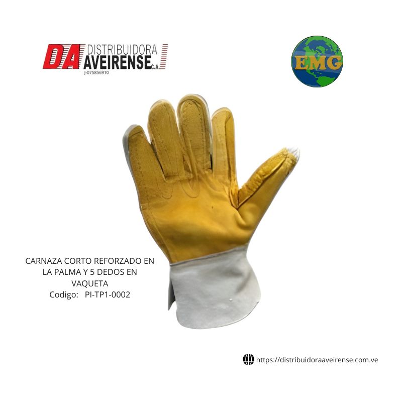 Guante CARNAZA CORTO REFORZADO EN LA PALMA Y 5 DEDOS EN VAQUETA.