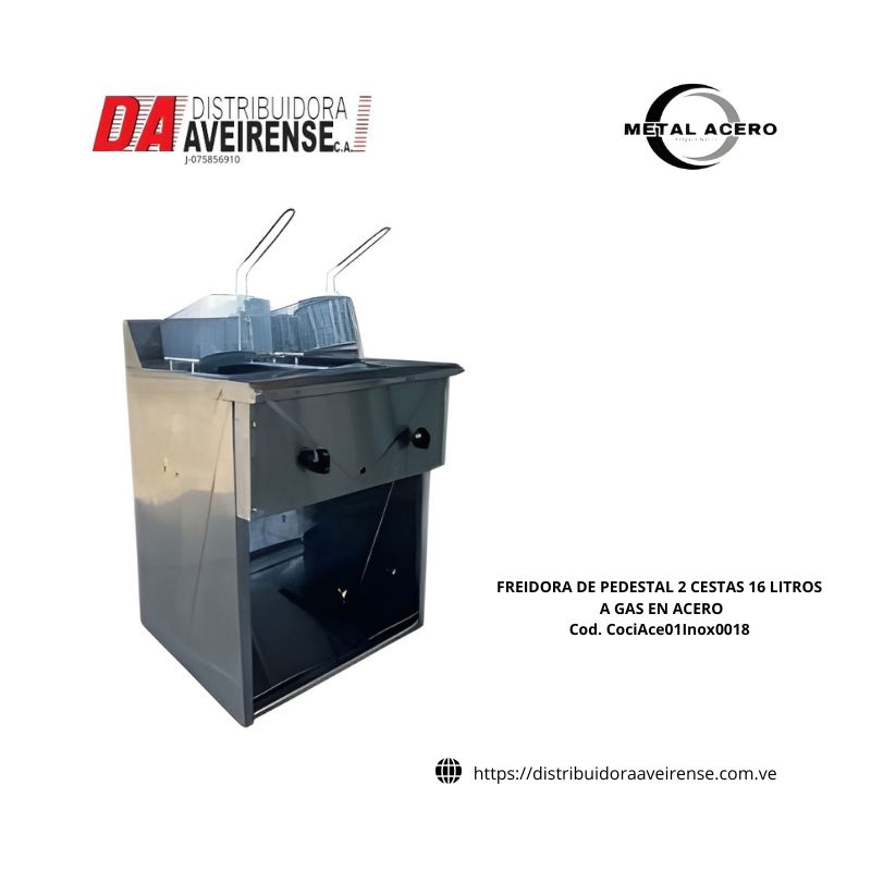 FREIDORA DE PEDESTAL 2 CESTAS 16 LITROS A GAS EN ACERO 430 , calibre 24 , quemador en fundicion